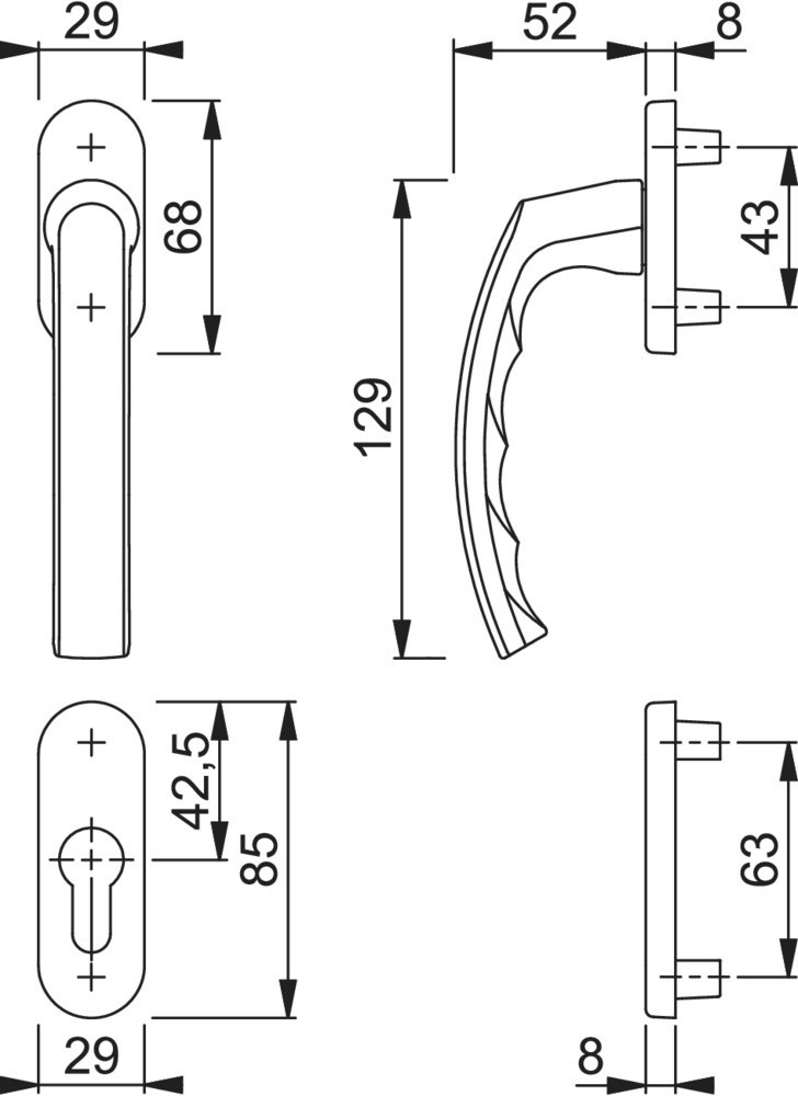 Produktinformationen "HOPPE Fenstertür-Halbgarnitur Luxembourg 099/66N/66NS, N 10, Profilzylinder gelocht"