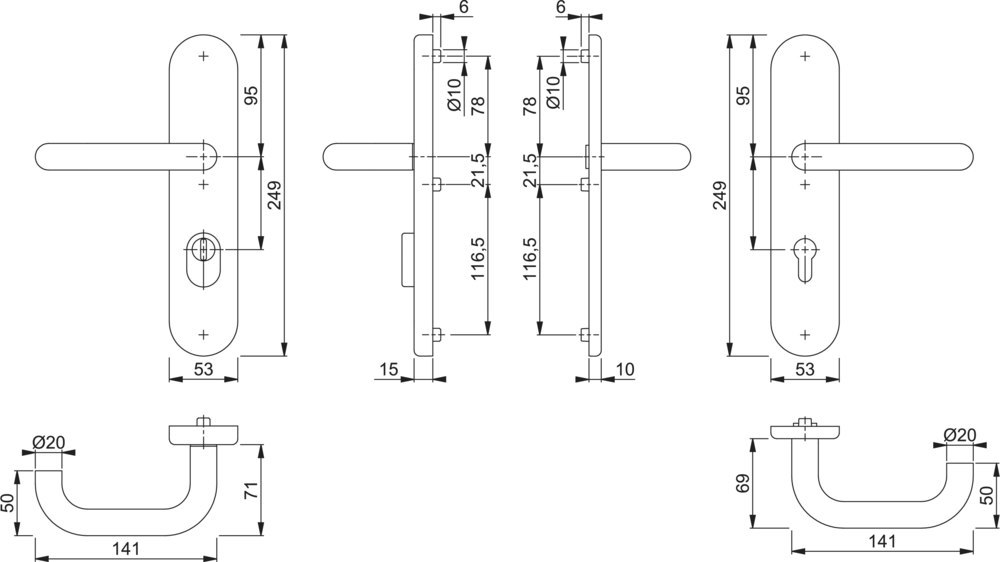 Sicherheits-Drückergarnitur Paris FS-E138F/3332ZA/3310; Produkttyp: Sicherheits-Drückergarnitur; Produkttyp (Hersteller): Sicherheits-Drückergarnitur; Ausführung: Langschild; Form: oval; Zulassung: für Fluchttüren,für Feuerschutz,für Rauchschutz; Material: Edelstahl; Form Türgriff (innen): U-Form; Form Türgriff (außen): U-Form; Länge Türgriff (innen): 141 mm; Länge Türgriff (außen): 141 mm; Höhe Türgriff (innen): 69 mm; Höhe Türgriff (außen): 69 mm; Durchmesser Türgriff (innen): 20 mm; Durchmesser Türgriff (außen): 20 mm; Material Unterkonstruktion (innen): Zamak/Stahl; Material Unterkonstruktion (außen): Stahl; Gütesiegel: RAL-GZ; Einsatzbereich: Objekttür; Türart: Vollblatt; Türwerkstoff: Stahl,Holz; Zylinderabdeckung: mit Zylinderabdeckung; DIN-Richtung: DIN Links-Rechts; Widerstandsklasse nach DIN 18257: ES 1; Vierkant: 9 mm; Entfernung: 92 mm; Lochung: Profilzylinder gelocht; Ausführung Vierkant: Vierkantvollstift; Farbe: grau; Farbton: edelstahl matt; Schildlänge außen: 249 mm; Schildlänge innen: 249 mm; Schildbreite außen: 53 mm; Schildbreite innen: 53 mm; Schildstärke innen: 10 mm; Schildstärke außen: 15 mm; Zylinderüberstand min.: 10 mm; Zylinderüberstand max.: 18 mm; Türstärke min.: 67 mm; Türstärke max.: 72 mm; Norm: DIN 18273,DIN 18257,DIN EN 179,DIN EN 1906; EN 1906 - Gebrauchskategorie: Klasse 4; EN 1906 - Korrosionsbeständigkeit: Klasse 4; Klassifizierungsschlüssel EN 1906: 47-D1142U