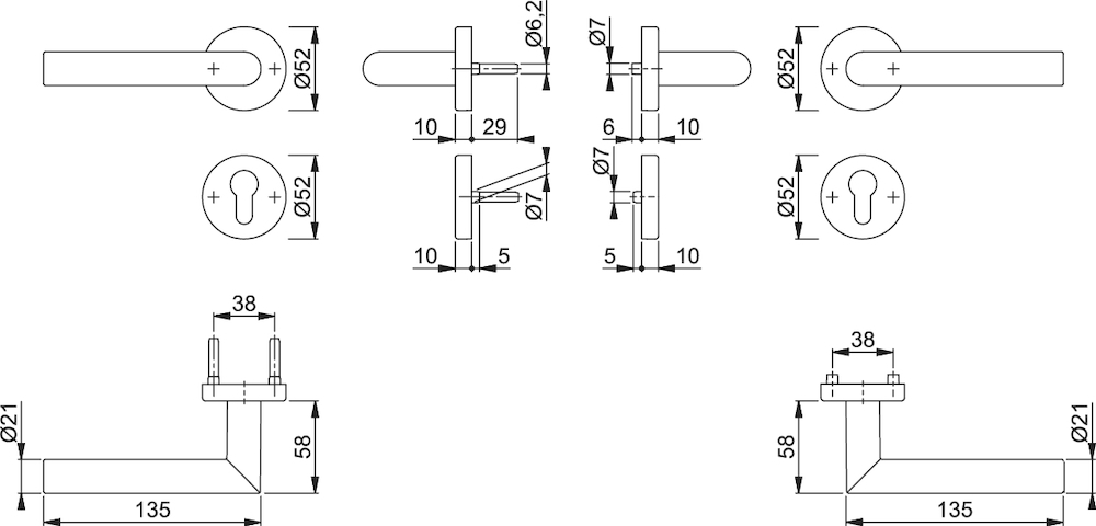HOPPE®, Feuerhemmend-Drückergarnitur, Abdeckung: mit Rosetten, Modell: Amsterdam, Modellnummer: FS-1400/42H/42HS, Lochung: Profilzylinder gelocht, Vierkant: 9mm, Material: Aluminium, Farbton: naturfarbig, Oberfläche: eloxiert, DIN-Richtung: DIN Links-Rechts, Lagerung: Gleitlager, wartungsfrei, festdrehbar, Rückholfeder, Sertos®, Befestigungstechnik: mit Stütznocken, Befestigungsart: verdeckt verschraubt, Befestigungssystem: Steckverbindung, Material Unterkonstruktion: Stahl, Durchmesser: 52mm, Anschlagrichtung: Drücker rechts/links verwendbar, Drückerbefestigung: Profilvollstift, Drücker: mit Stahlkern, Drückerform: Gehrung, Drückerdurchmesser: 21mm, Drückerlänge: 135mm, Drückerhöhe: 58mm, Form: rund, Stärke Abdeckung: 10mm, Türstärke min.: 45mm, Türstärke max.: 65mm, Türart: Innentüren, Türwerkstoff: Holz, Stahl, Norm: DIN 18273, DIN EN 1906, Zulassung: für Feuerschutz, für Rauchschutz