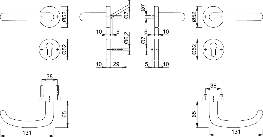HOPPE®, Feuerhemmend-Drückergarnitur, Abdeckung: mit Rosetten, Modell: San Francisco, Modellnummer: FS-E1301/42H/42HS, Lochung: Profilzylinder gelocht, Vierkant: 9mm, Material: Edelstahl, Farbton: edelstahl matt, DIN-Richtung: DIN Links-Rechts, Lagerung: Gleitlager, wartungsfrei, festdrehbar, Rückholfeder, Sertos®, Befestigungstechnik: mit Stütznocken, Befestigungsart: verdeckt verschraubt, Befestigungssystem: Steckverbindung, Material Unterkonstruktion: Stahl, Durchmesser: 52mm, Anschlagrichtung: Drücker rechts/links verwendbar, Drückerbefestigung: Profilvollstift, Drückerform: gebogen, Drückerlänge: 131mm, Drückerhöhe: 61mm, Form: rund, Stärke Abdeckung: 10mm, Türstärke min.: 40mm, Türstärke max.: 65mm, Türart: Innentüren, Türwerkstoff: Holz, Stahl, Norm: DIN 18273, DIN EN 1906, Zulassung: für Feuerschutz, für Rauchschutz