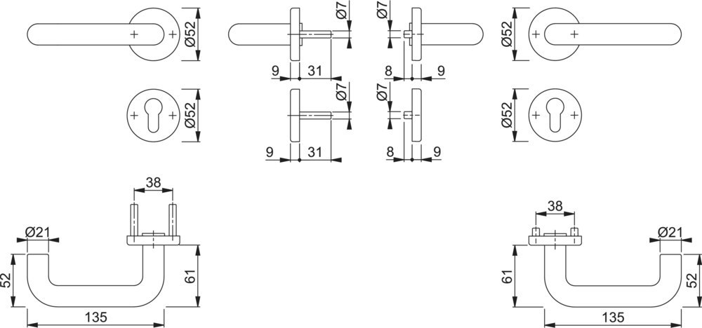 Höhe Schlüsselrosette (außen): 9.00 MMT