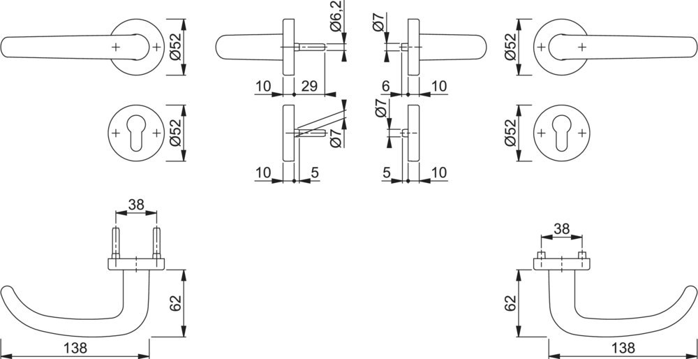 | Höhe Drückerrosette (außen): | 10.00 MMT |