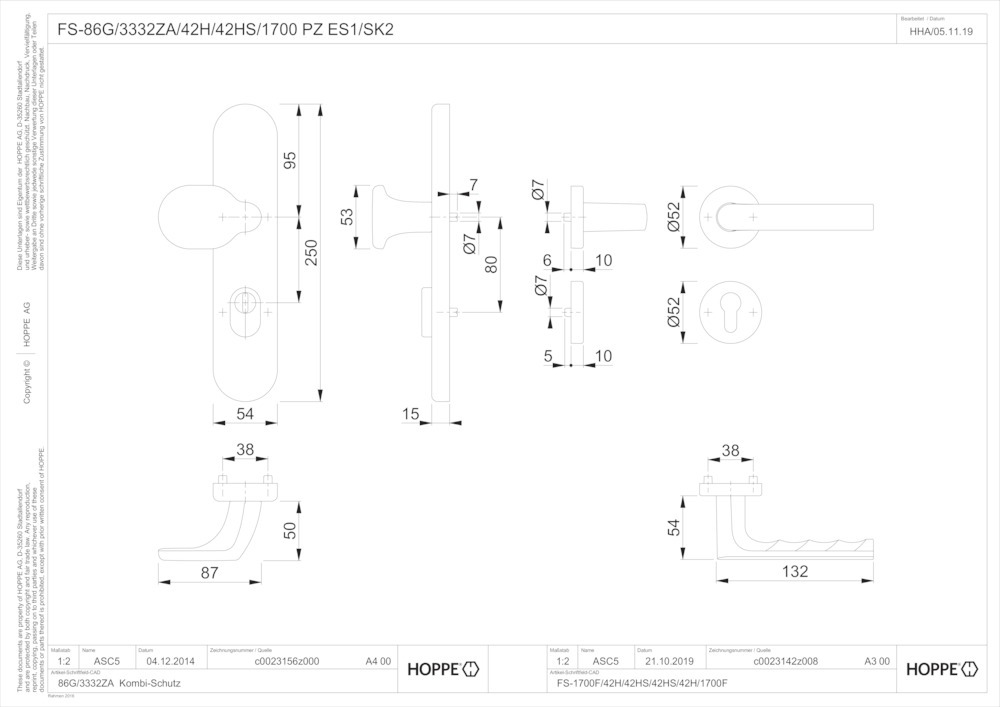 Produktinformationen "HOPPE Kombi-Schutzgarnitur Hamburg FS-86G/3332ZA/42H/42HS/1700,LS/Ros.ES1,ZA/PZ 72/9,F9714M,TS 42-47"