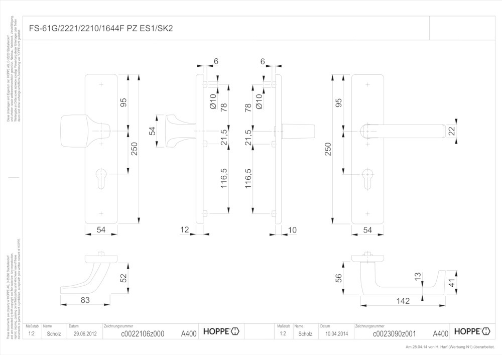 Produktinformationen "HOPPE Sicherheits-Wechselgarnitur Dallas FS-61G/2221/2210/1644F,LS eck.,12mm,ES1/PZ 92/9,F1,TS 67-72"