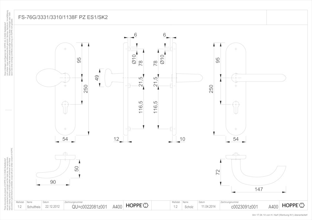 Produktinformationen "HOPPE Sicherheits-Wechselgarnitur Marseille FS-76G/3331/3310/1138F,LS ov.,12mm,ES1/PZ 72/9,F1,TS 42-47"