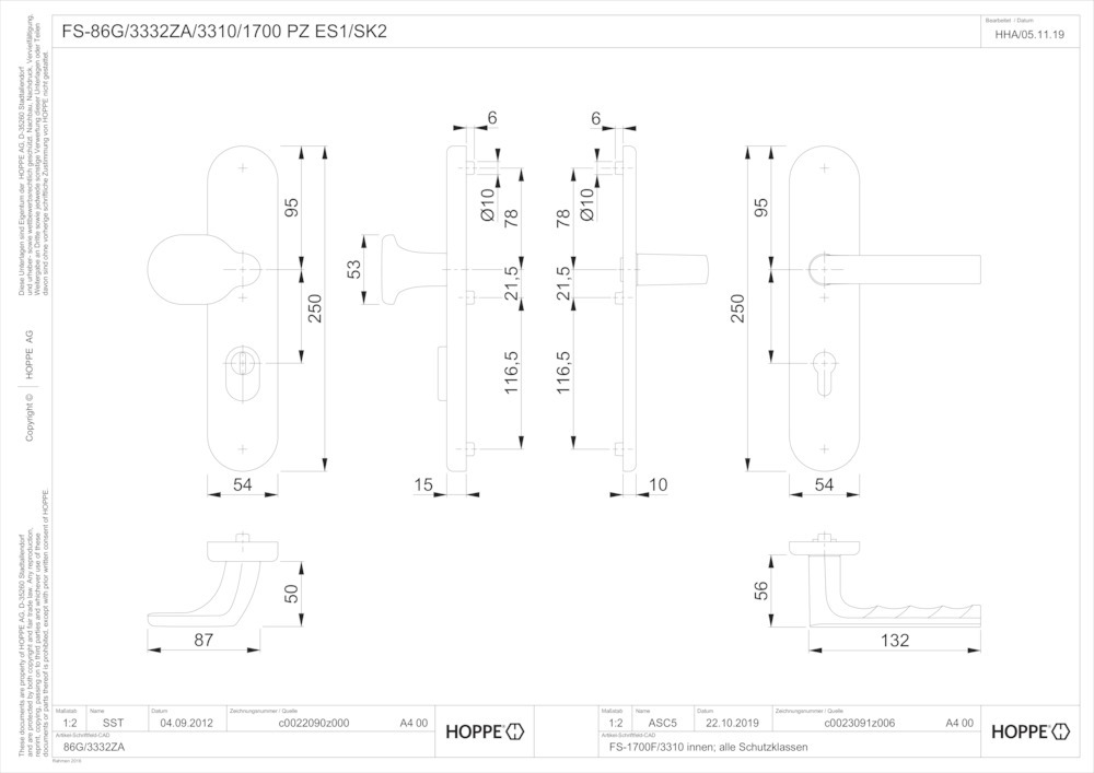 Produktinformationen "HOPPE FH-Schutz-Wechselgarnitur mit Langschild Hamburg FS-86G/3332ZA/3310/1700, Aluminium"