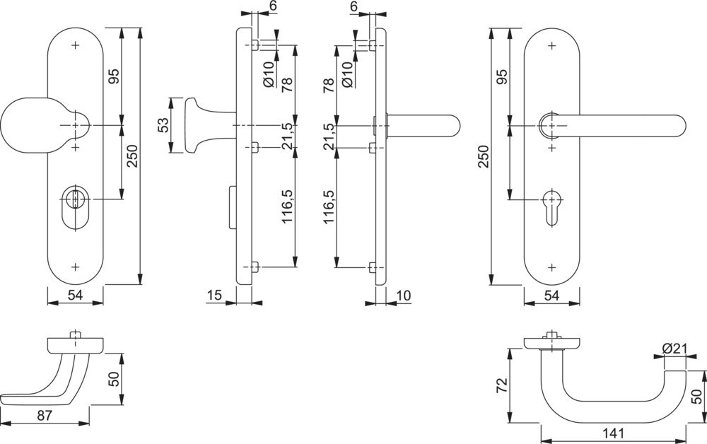 Sicherheits-Wechselgarnitur Paris FS-86G/3332ZA/3310/138F; Produkttyp: Sicherheits-Wechselgarnitur; Produkttyp (Hersteller): Sicherheits-Wechselgarnitur; Ausführung: Langschild; Form: oval; Zulassung: für Rauchschutz,für Feuerschutz; Material: Aluminium; Form Türgriff (innen): gebogen; Ausführung Türgriff (innen): mit Stahlkern; Form Türgriff (außen): gekröpft; Ausführung Türgriff (außen): fest; Gewinde Knopf/Griffplatte: M12; Länge Türgriff (innen): 152 mm; Länge Türgriff (außen): 53 mm; Breite Türgriff (außen): 87 mm; Höhe Türgriff (innen): 63 mm; Höhe Türgriff (außen): 50 mm; Durchmesser Türgriff (innen): 21 mm; Material Unterkonstruktion (innen): Zamak/Stahl; Material Unterkonstruktion (außen): Stahl; Gütesiegel: RAL-GZ; Einsatzbereich: Objekttür; Türart: Vollblatt; Türwerkstoff: Holz,Stahl; Zylinderabdeckung: mit Zylinderabdeckung; DIN-Richtung: DIN Links-Rechts; Widerstandsklasse nach DIN 18257: ES 1; Vierkant: 9 mm; Entfernung: 92 mm; Lochung: Profilzylinder gelocht; Ausführung Vierkant: Rollenwechselstift; Farbe: silberfarben; Farbton: naturfarben; Oberfläche: eloxiert; Schildlänge außen: 250 mm; Schildlänge innen: 250 mm; Schildbreite außen: 54 mm; Schildbreite innen: 54 mm; Schildstärke innen: 10 mm; Schildstärke außen: 15 mm; Zylinderüberstand min.: 10 mm; Zylinderüberstand max.: 18 mm; Türstärke min.: 67 mm; Türstärke max.: 72 mm; Norm: DIN 18273,DIN 18257,DIN EN 179,DIN EN 1906; EN 1906 - Gebrauchskategorie: Klasse 4; EN 1906 - Korrosionsbeständigkeit: Klasse 4; Klassifizierungsschlüssel EN 1906: 47-D1142U
