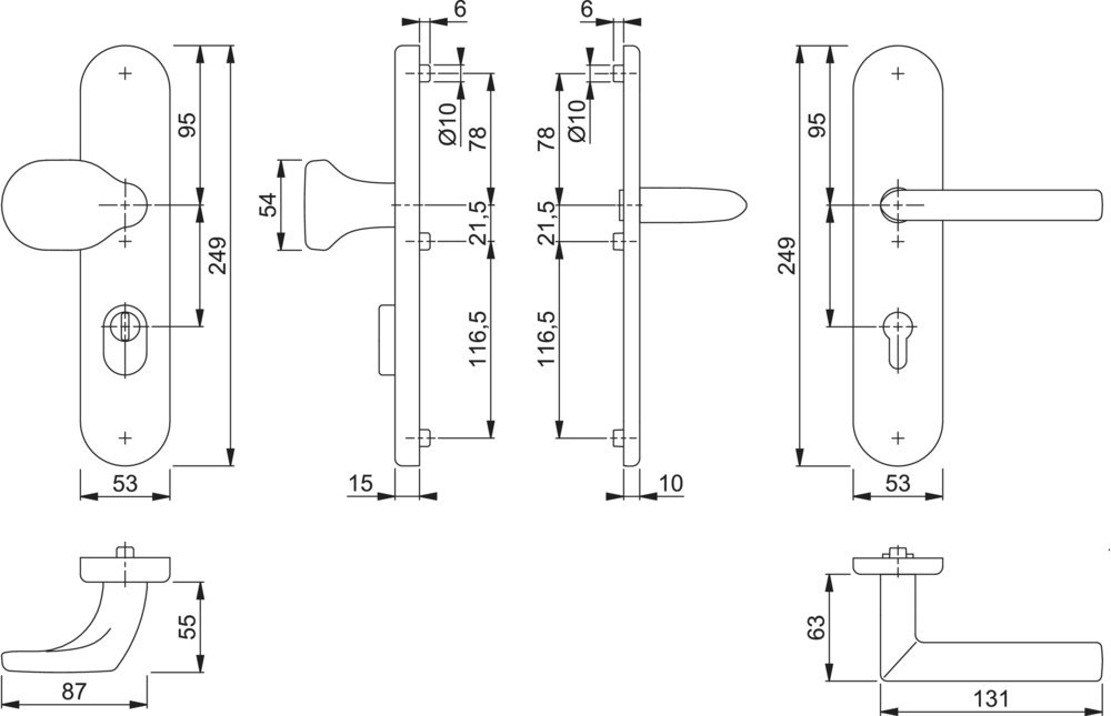 Produktinformationen "HOPPE Sicherheits-Wechselgarnitur Stockholm FS-E86G/3332ZA/3310/1140F,LS ov.,15mm,ES1,ZA/PZ 72/9,F69,TS 42-47"