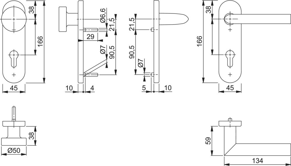 Wechselgarnitur Stockholm FS-58/353KH/1140; Produkttyp: Wechselgarnitur; Produkttyp (Hersteller): Wechselgarnitur; Ausführung: Kurzschild; Befestigungsart: verdeckt verschraubt; Befestigungstechnik: mit Stütznocken; Form: oval; Vierkant: 9 mm; Material: Aluminium; Material Unterkonstruktion: Stahl; Form Türgriff (innen): Gehrung; Form Türgriff (außen): Flachknopf; Ausführung Türgriff (außen): fest; Gewinde Knopf/Griffplatte: M12; Durchmesser Türgriff (außen): 50 mm; Länge Türgriff (innen): 134 mm; Höhe Türgriff (innen): 59 mm; Höhe Türgriff (außen): 38 mm; Schildbreite außen: 45 mm; Schildbreite innen: 45 mm; Schildlänge außen: 166 mm; Schildlänge innen: 166 mm; Schildstärke außen: 10 mm; Schildstärke innen: 10 mm; Lagerung: wartungsfreies Gleitlager,festdrehbar,mit Rückholfeder; Einsatzbereich: Objekttür; Türart: Vollblatt; Türwerkstoff: Stahl,Holz; Norm: DIN 18273,DIN EN 1906; Zulassung: für Feuerschutz,für Rauchschutz; Lochung: Profilzylinder gelocht; Entfernung: 72 mm; DIN-Richtung: DIN Links-Rechts; Farbe: silber; Farbton: naturfarben; Oberfläche: eloxiert; Ausführung Vierkant: Rollenwechselstift; Türstärke min.: 45 mm; Türstärke max.: 65 mm; EN 1906 - Gebrauchskategorie: Klasse 4; EN 1906 - Korrosionsbeständigkeit: Klasse 5; Klassifizierungsschlüssel EN 1906: 47*-D1150A