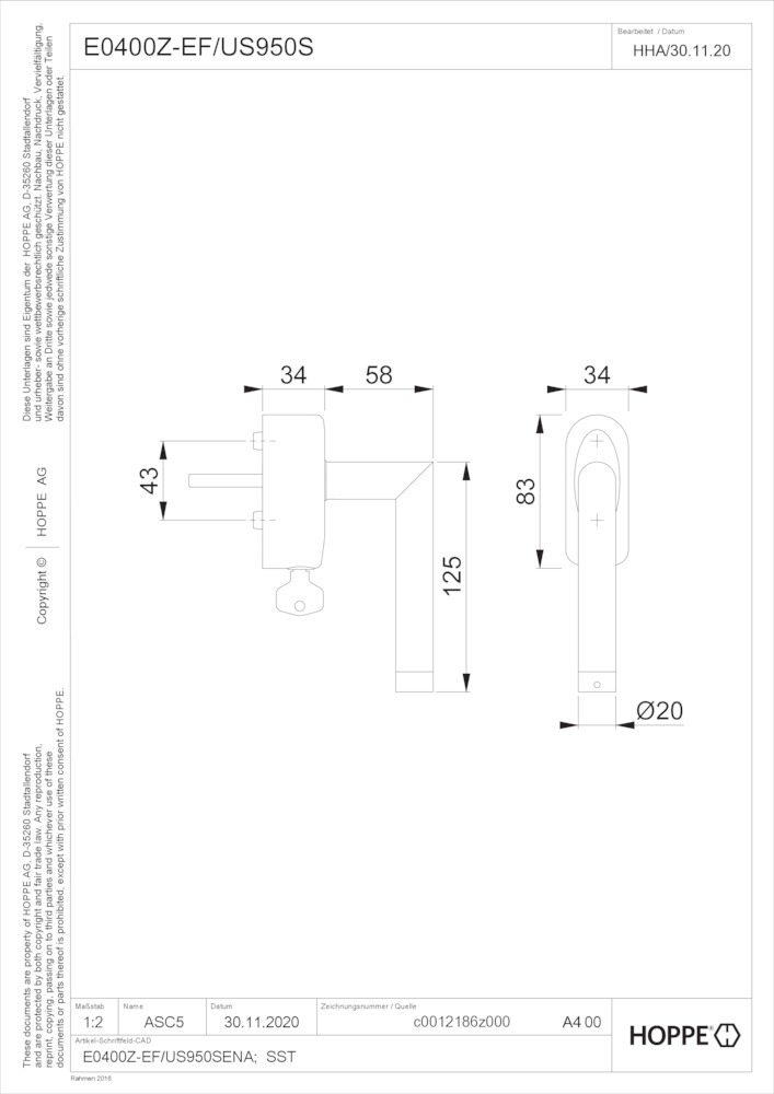 Produktinformationen "HOPPE Funk-Fenstergriff Amsterdam E0400Z-EF/US950S, abschließbar, oval,7/32,F69"