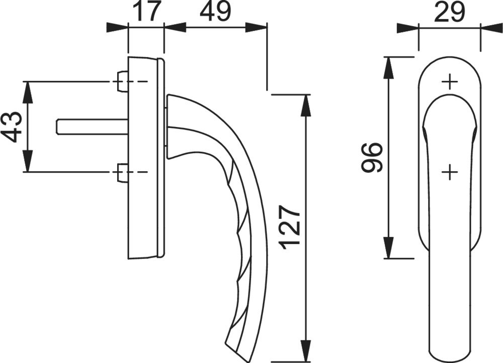 Funk-Fenstergriff Tôkyô 0710/FR-415; Produkttyp: Funk-Fenstergriff; Produkttyp (Hersteller): Funk-Fenstergriff; Rastung: 90°; Stütznocken: mit Stütznocken; Material: Aluminium; Montageart: aufliegend; Befestigungsart: verdeckt verschraubt; Technik: VarioFit®; Länge: 127 mm; Höhe: 49 mm; Befestigungsabstand: 43 mm; Form Rosette: oval; Breite Rosette: 29 mm; Höhe Rosette: 96 mm; Stärke Rosette: 17 mm; Material Unterkonstruktion: Kunststoff; Durchmesser Stütznocken: 10 mm; Funkfrequenz: 868 MHz; Funk-Protokoll: EnOcean Eep F6-10-00; Sendeleistung max.: 10 mW; Übertragungsrate: 120 kbps +/-5 %; Funkreichweite: 30 m; Stromversorgung: Energy Harvesting (Batterielos); Einsatzbereich: Drehkipp; Fensterwerkstoff: Holz,Kunststoff,Aluminium; Vierkant: 7 mm; Stift vorstehend: 32-42 mm; DIN-Richtung: DIN Links-Rechts; Farbe: grau; Farbton: stahlfarbig; Oberfläche: eloxiert