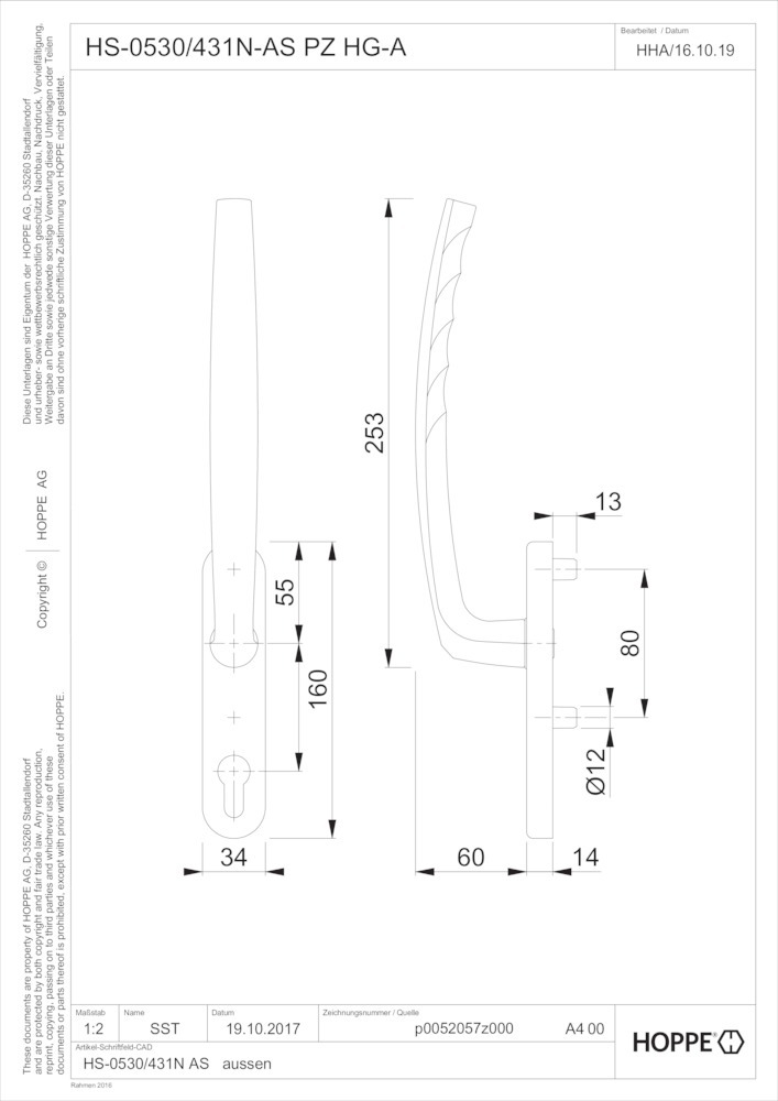 Produktinformationen "HOPPE Handhebelgarnitur Atlanta HS-0530/431N-AS, außen, PZ"