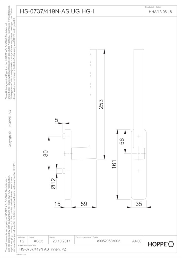 Handhebelgarnitur Toulon HS-0737/419N-AS; Material: Aluminium; Rastung: 180°,mit Kugelrastung; Befestigungsart: verdeckt verschraubt; Befestigungstechnik: mit Stütznocken; Lieferung: ohne Schrauben; Einsatzbereich: Hebeschiebe; Basis: Handhebelgarnitur; Material Unterkonstruktion: Zamak; Vierkant: 10 mm; Farbe: grau; DIN-Richtung: DIN Links-Rechts; Modellnummer: HS-0737/419N-AS; Nockendurchmesser: 12 mm; Sockelbreite: 35 mm; Sockelhöhe: 161 mm; Sockelstärke: 15 mm; Befestigungsabstand: 80 mm; Oberfläche: eloxiert; Farbton: stahlfarbig; Fensterwerkstoff: Holz,Kunststoff; Lagerung: festdrehbar; Lochung: ungelocht; Anwendung: innen; Grifflänge: 253 mm; Griffhöhe: 59 mm