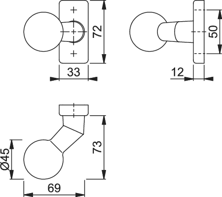 HOPPE®, Profiltür-Knopf, Abdeckung: auf Rosette, Form Abdeckung: eckig, DIN-Richtung: DIN Links-Rechts, Modellnummer: 50G/44, Material: Aluminium, Farbton: naturfarbig, Oberfläche: eloxiert, Eigenschaft: Knopf fest auf Rosette, Befestigungsart: verdeckt verschraubt, Befestigungstechnik: ohne Stütznocken, Material Unterkonstruktion: Zamak, Stärke Abdeckung: 12 mm, Befestigungssystem: Stiftverbindung, Lagerung: Gleitlager, wartungsfrei, feststehend, Türart: Rahmentüren, Türwerkstoff: Aluminium, Kunststoff, Länge: 72 mm, Breite: 33 mm, Knopfform: Kugelform, gekröpft, Knopfdurchmesser: 45 mm, Knopfbreite: 69 mm, Knopfhöhe: 73 mm, Knopfbefestigung: Profilvollstift