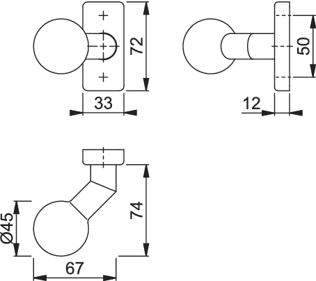 HOPPE®, Profiltür-Knopf, Abdeckung: auf Rosette, Form Abdeckung: eckig, DIN-Richtung: DIN Links-Rechts, Modellnummer: E50G/44, Material: Edelstahl, Farbton: edelstahl matt, Eigenschaft: Knopf fest auf Rosette, Befestigungsart: verdeckt verschraubt, Befestigungstechnik: ohne Stütznocken, Material Unterkonstruktion: Zamak, Stärke Abdeckung: 12 mm, Befestigungssystem: Stiftverbindung, Lagerung: feststehend, Türart: Rahmentüren, Türwerkstoff: Aluminium, Kunststoff, Länge: 72 mm, Breite: 33 mm, Knopfform: Kugelform, gekröpft, Knopfdurchmesser: 45 mm, Knopfbreite: 67 mm, Knopfhöhe: 74 mm, Knopfbefestigung: Wechselstift mit Rolle