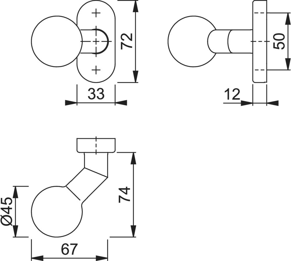 | Durchmesser Türgriff (außen): | 45.00 MMT |