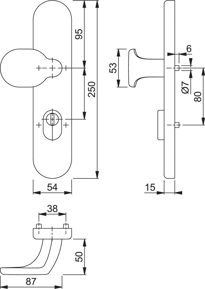 Produktinformationen "HOPPE Sicherheits-Halbgarnitur 86G/3332ZA,LS ov.,15mm,ES1,ZA/PZ 72/8,F1,TS 37-42"