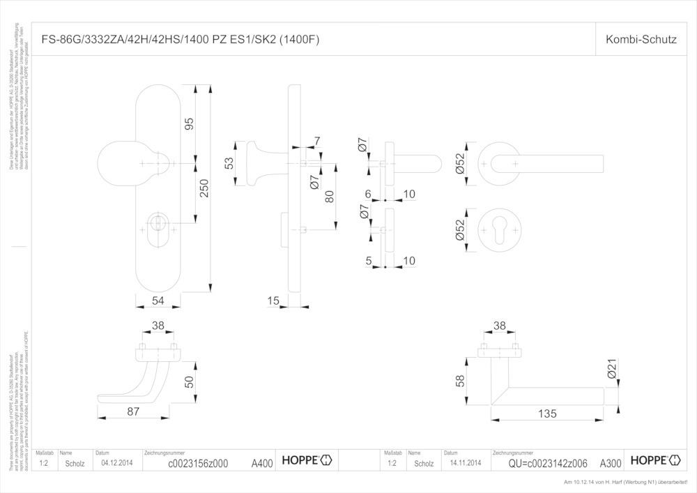 Produktinformationen "HOPPE Kombi-Schutzgarnitur Amsterdam FS-86G/3332ZA/42H/42HS/1400"