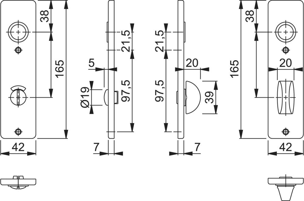 Produktinformationen "HOPPE Kurzschildpaar 202KP, eckig o. No., WC/SS 78, TS 40, F2"