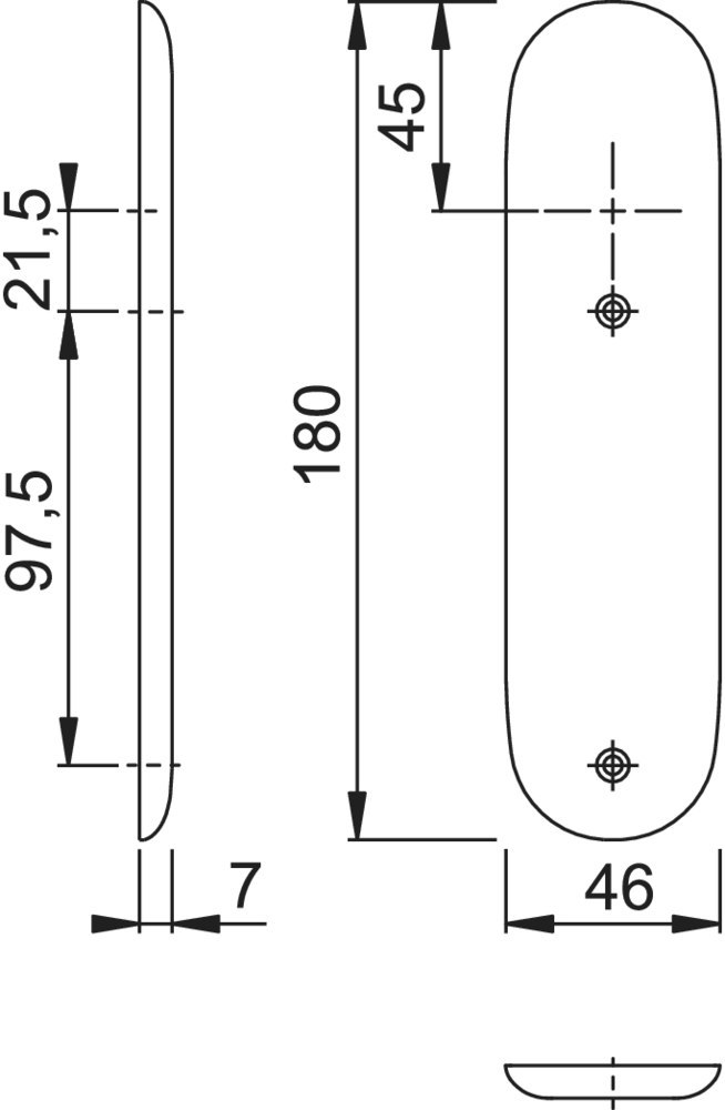 Kurzschildpaar 273KP; Produkttyp: Kurzschildpaar; Produkttyp (Hersteller): Kurzschildpaar; Form: oval; Befestigungsart: sichtbar verschraubt; Anwendung: außen/innen; Material: Aluminium; Länge: 180 mm; Breite: 46 mm; Höhe: 7 mm; Befestigungsabstand: 97,5 mm; Türart: Vollblatt; Einsatzbereich: Tür; Stütznocken: ohne Stütznocken; Farbe: silber; Farbton: naturfarben; Oberfläche: eloxiert; Lochung: Blind; Türstärke: 40 mm; Türstärke min.: 40 mm; Türstärke max.: 40 mm