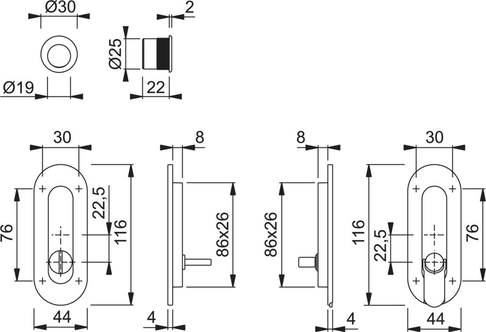 Produktinformationen "HOPPE Muschelgriff Set 7 M472,116x44,WC/S,8mm,F71,TS 33-48"