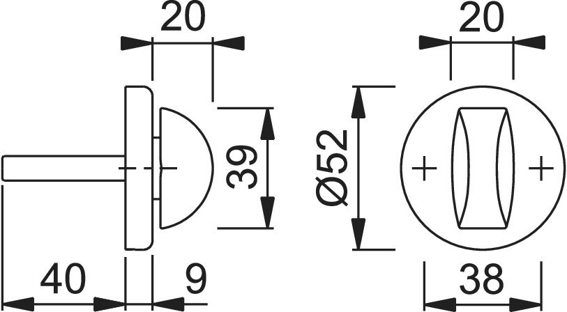 Stift vorstehend: 40.00 MMT