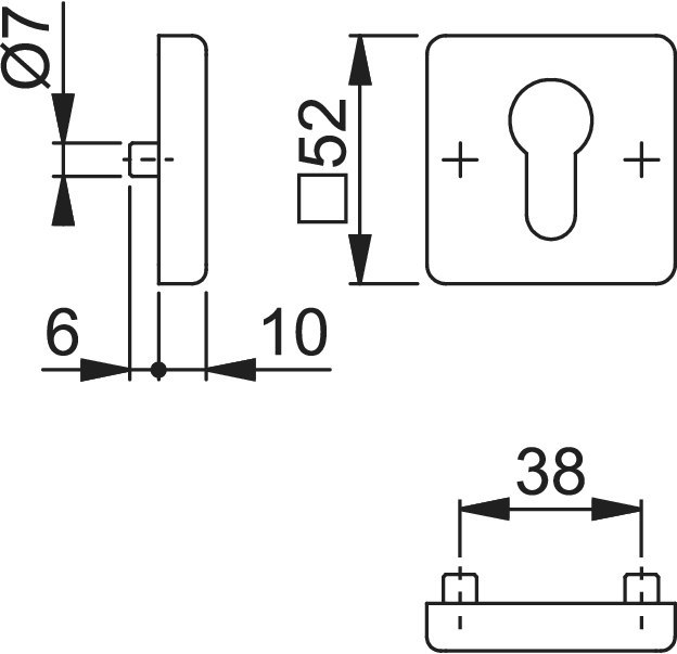 Produktinformationen "HOPPE Schlüsselrosette 52S,eckig,PZ, 9mm,F1"