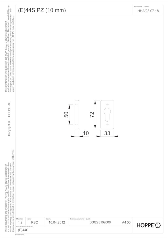 Produktinformationen "HOPPE Schlüsselrosette E44S, Edelstahl"