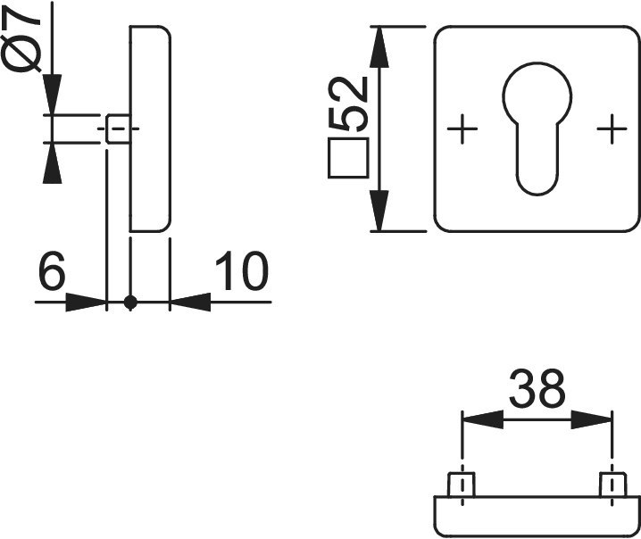 Produktinformationen "HOPPE Schlüsselrosettenpaar E52KVS,eckig,PZ, 10mm,TS 37-42,F69"