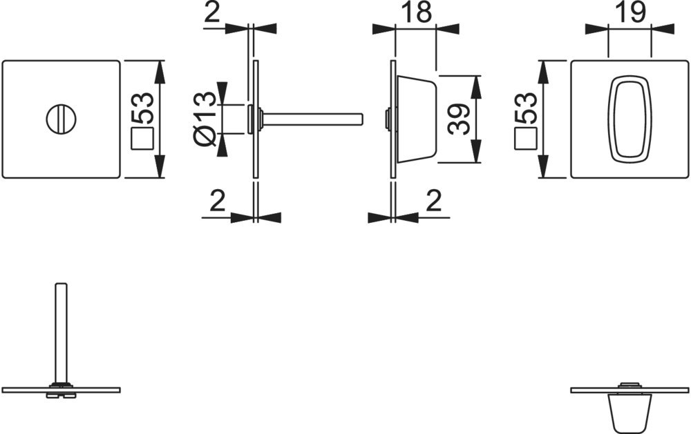 Produktinformationen "HOPPE Schlüsselrosettenpaar E848S-SK, eckig o. No., WC/S, 2mm, TS 35-45, F69, DIY"