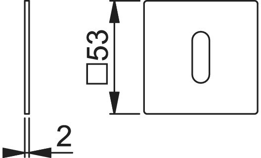 Schlüsselrosettenpaar E848S-SK; Produkttyp: Schlüsselrosettenpaar; Produkttyp (Hersteller): Schlüsselrosettenpaar; Anwendung: außen/innen; Form: eckig; Befestigungsart: selbstklebend; Material: Edelstahl; Länge: 53 mm; Breite: 53 mm; Einsatzbereich: Tür; Türart: Vollblatt; Lochung: Buntbart gelocht; Farbe: grau; Farbton: edelstahl matt; Stütznocken: ohne Stütznocken; Höhe: 2 mm