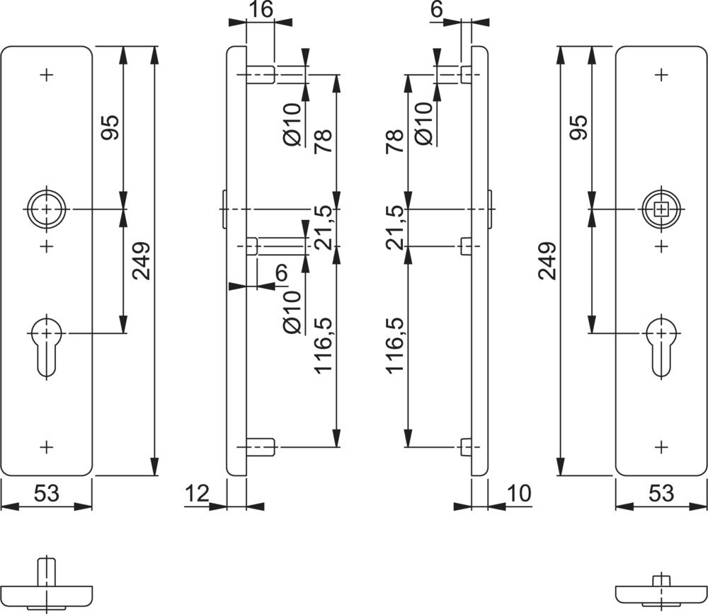 Schutz-Langschild E2221/2210; Produkttyp: Schutz-Langschild; Produkttyp (Hersteller): Schutzschildpaar; Form: eckig; Material: Edelstahl; Breite: 53 mm; Länge: 249 mm; Höhe: 12 mm; Material Unterkonstruktion: Stahl/Aluminium; Norm: DIN 18257; Einsatzbereich: Objekttür,Wohnungseingangstür; Türart: Vollblatt; Zylinderabdeckung: ohne Zylinderabdeckung; DIN-Richtung: DIN Links-Rechts; Widerstandsklasse nach DIN 18257: ES 1; Vierkant: 8 mm; Entfernung: 72 mm; Lochung: Profilzylinder gelocht; Farbe: grau; Farbton: edelstahl matt; Türstärke min.: 37 mm; Türstärke max.: 47 mm