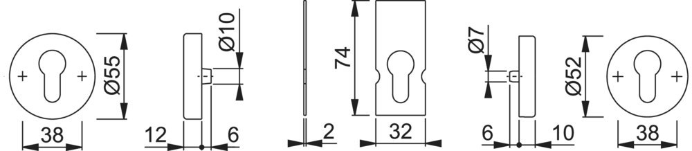 Produktinformationen "HOPPE Schutzrosette E42NSA/42HS,rund,12mm,ES1/PZ,F77-R,TS57-62"