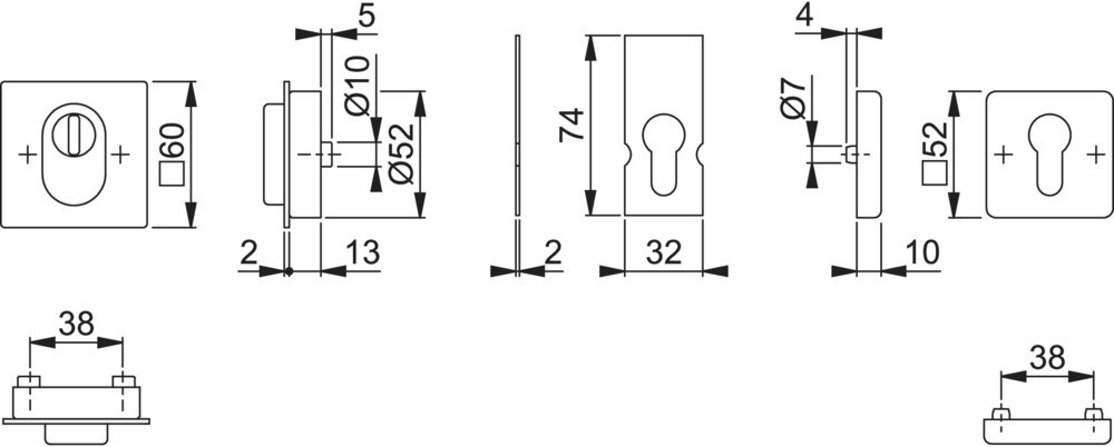 HOPPE Schutzrosette E75NSB-ZA/52S,eckig/flach,2mm,ES1,ZA/PZ,F69,TS65-75