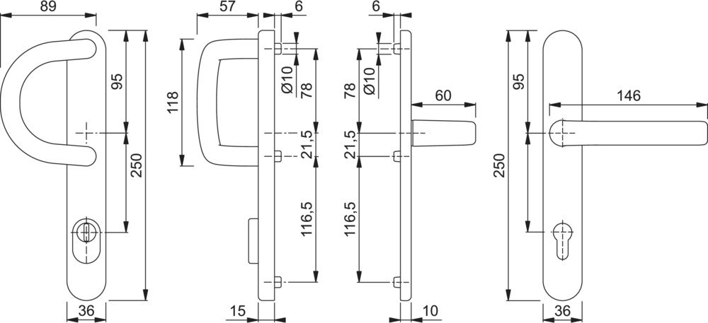 | Form Türgriff (außen): | Stoßgriff, gebogen, halbrund |