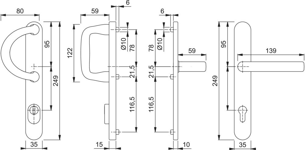 | Form Türgriff (außen): | Stoßgriff, gebogen, halbrund |