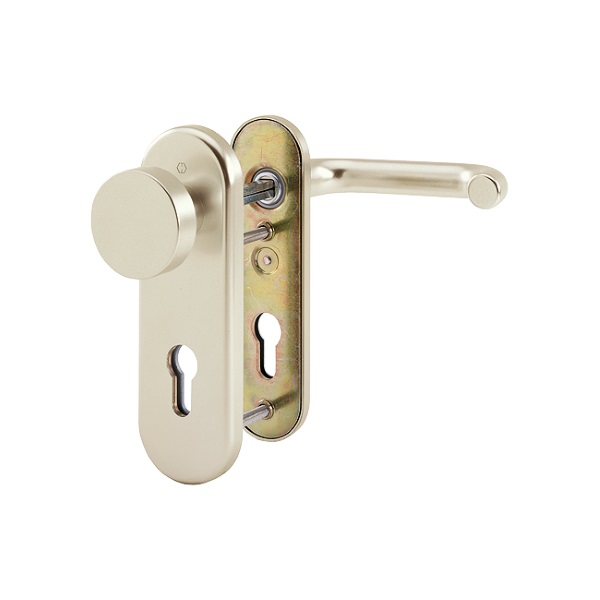Dieser Hoppe Paris Türgriff ist als Schutzgarnitur konzipiert. Die Schutzgarnitur ist in Edelstahl und Aluminium erhältlich. Es gibt sie in den Farben F1-Natur, F2-Neusilber und F69-Edelstahl matt. In der Version mit Zylinderabdeckung eignet sich die Hoppe Paris Schutzgarnitur besonders zum Einsatz an Wohnungseingangstüren und entspricht der Schutzklasse 2 (nach DIN EN 1906). Der Zylinderziehschutz ist für Zylinderüberstände von 10-18 mm ausgelegt. Die Befestigung erfolgt mit vedeckten durchgehenden M6-Gewindeschrauben. Zusätzlich gibt es noch eine sichtbare M4-Gewindeschraube an der Innenseite.