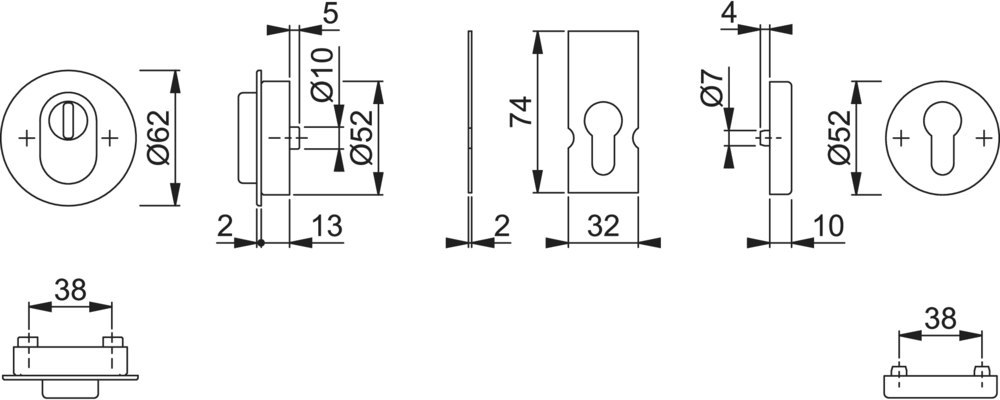 Produktinformationen "HOPPE Schutzrosette E29NSB-ZA/42HS,rund/flach,2mm,ES1,ZA/PZ,F69,TS65-75"
