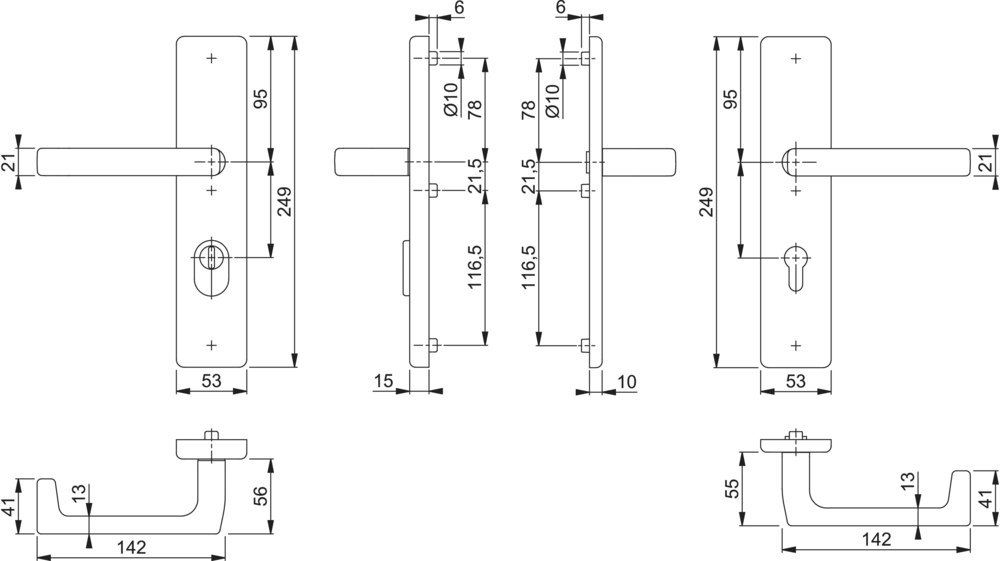 Sicherheits-Drückergarnitur Detroit FS-E1644F/2222ZA/2210; Produkttyp: Sicherheits-Drückergarnitur; Produkttyp (Hersteller): Sicherheits-Drückergarnitur; Ausführung: Langschild; Form: eckig; Zulassung: für Rauchschutz,für Feuerschutz; Material: Edelstahl; Form Türgriff (innen): U-Form; Form Türgriff (außen): U-Form; Länge Türgriff (innen): 142 mm; Länge Türgriff (außen): 142 mm; Höhe Türgriff (innen): 55 mm; Höhe Türgriff (außen): 55 mm; Material Unterkonstruktion (innen): Zamak/Stahl; Material Unterkonstruktion (außen): Stahl; Gütesiegel: RAL-GZ; Einsatzbereich: Objekttür; Türart: Vollblatt; Türwerkstoff: Stahl,Holz; Zylinderabdeckung: mit Zylinderabdeckung; DIN-Richtung: DIN Links-Rechts; Widerstandsklasse nach DIN 18257: ES 1; Vierkant: 9 mm; Entfernung: 72 mm; Lochung: Profilzylinder gelocht; Ausführung Vierkant: Vierkantvollstift; Farbe: grau; Farbton: edelstahl matt; Schildlänge außen: 249 mm; Schildlänge innen: 249 mm; Schildbreite außen: 53 mm; Schildbreite innen: 53 mm; Schildstärke innen: 10 mm; Schildstärke außen: 15 mm; Zylinderüberstand min.: 10 mm; Zylinderüberstand max.: 18 mm; Türstärke min.: 42 mm; Türstärke max.: 47 mm; Norm: DIN 18273,DIN 18257; EN 1906 - Gebrauchskategorie: Klasse 4; EN 1906 - Korrosionsbeständigkeit: Klasse 4; Klassifizierungsschlüssel EN 1906: 47-D1142U
