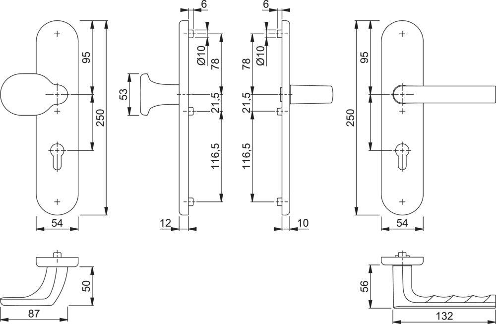 Produktinformationen "HOPPE Sicherheits-Wechselgarnitur Hamburg 86G/3331/3310/1700,LS ov.,12mm,ES1/PZ 72/9,F9714M,TS 42-47"