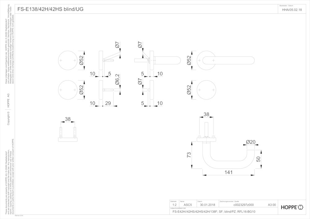 Produktinformationen "HOPPE Standflügelgarnitur Paris FS-E138/42H/42HS,BL/UG,9,F69,TS 50-75"