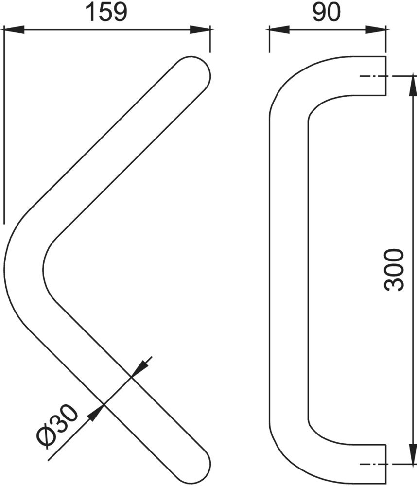 Stoßgriff 5210; Produkttyp: Stoßgriff; Produkttyp (Hersteller): Bügelgriff; Breite: 159 mm; Form: Dreieck; Befestigungsart: verdeckt verschraubt; Einsatzbereich: Objekttür,Haustür; Material: Aluminium; Türwerkstoff: Holz,Kunststoff,Aluminium; DIN-Richtung: DIN Links-Rechts; Befestigungsabstand: 300 mm; Länge: 330 mm; Durchmesser: 30 mm; Höhe: 90 mm; Farbe: silberfarben; Farbton: naturfarben; Oberfläche: eloxiert