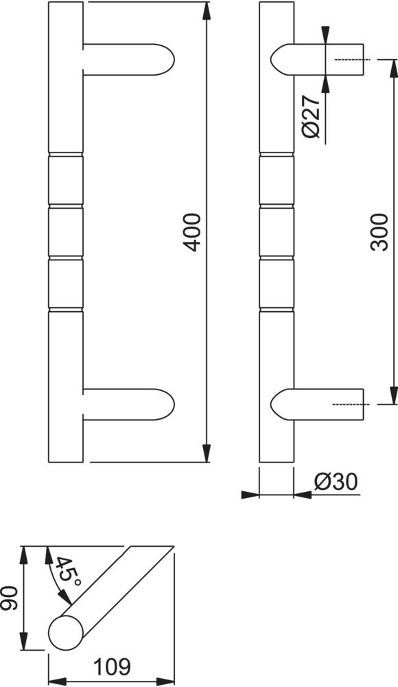 Produktinformationen "HOPPE Stoßgriff E5012DR,Befestigungsabstand 300,Länge 400,Durchmesser 30,F69"
