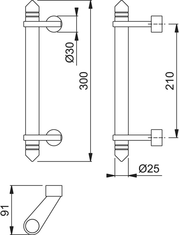 HOPPE Stoßgriff E5019AD,Befestigungsabstand 210,Länge 300,Durchmesser 25,F69