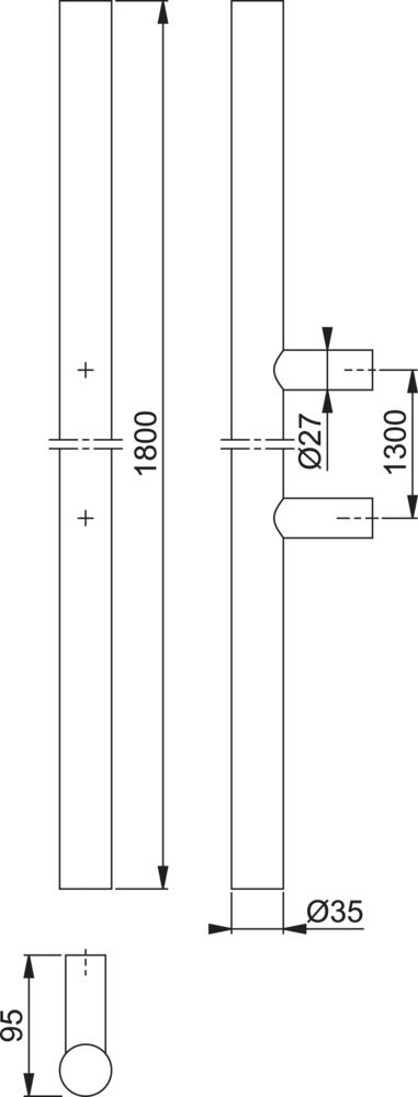 Produktinformationen "HOPPE Stoßgriff E5061,Befestigungsabstand 1.300,Länge 1.800,Durchmesser 35,F69"