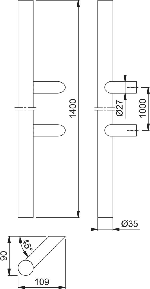 Produktinformationen "HOPPE Stoßgriff E5062,Befestigungsabstand 1.200,Länge 1.600,Durchmesser 35,F69"