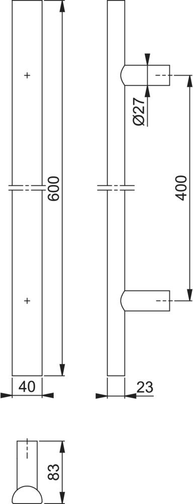 Produktinformationen "HOPPE Stoßgriff E5091,Befestigungsabstand 560,Länge 800,Durchmesser 40x23,F69"