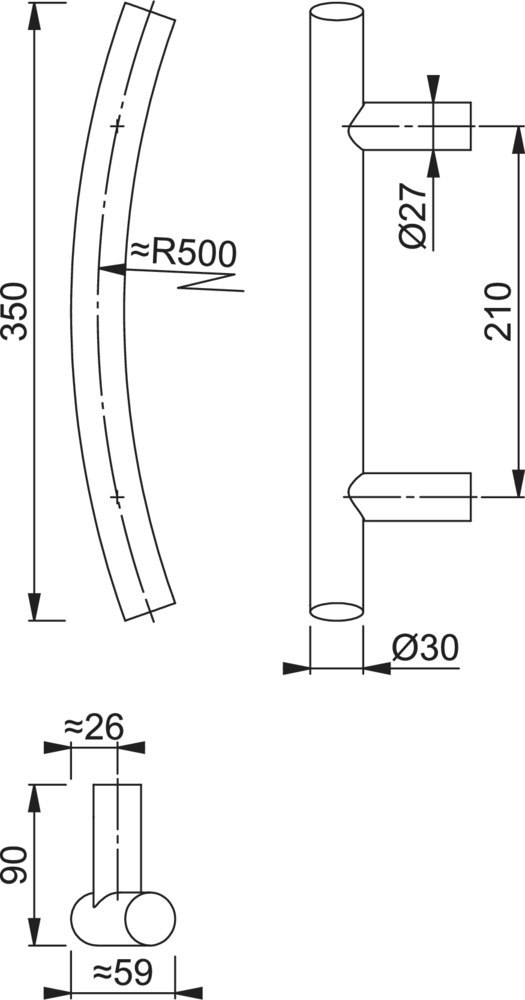 Produktinformationen "HOPPE Stoßgriff E5511,Befestigungsabstand 210,Länge 350,Durchmesser 30,F69"