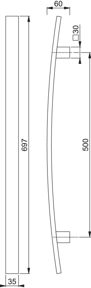 Produktinformationen "HOPPE Stoßgriff E5606,Befestigungsabstand 500,Länge 697,F69"