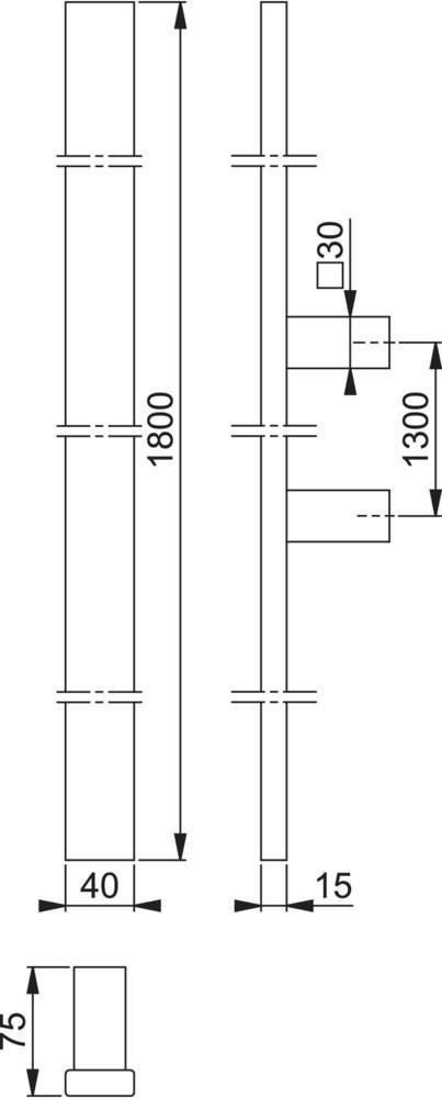 Produktinformationen "HOPPE Stoßgriff E5726,Befestigungsabstand 1.300,Länge 1.800,Durchmesser 40x15,F69"